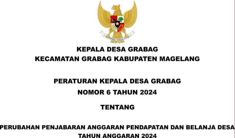 PERKADES NO 6 TAHUN 2024 TENTANG PERUBAHAN PENJABARAN ANGGARAN PENDAPATAN DAN BELANJA DESA TAHUN 2024