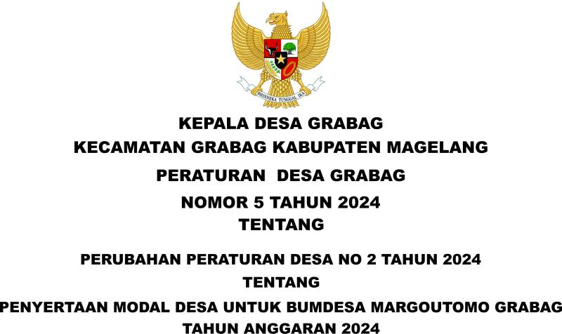 PERATURAN DESA NO 5 TENTANG PERUBAHAN PERATURAN DESA NO 2 TAHUN 2024 TENTANG PENYERTAAN MODAL DESA UNTUK BUMDESA MARGOITOMO TAHUN 2024